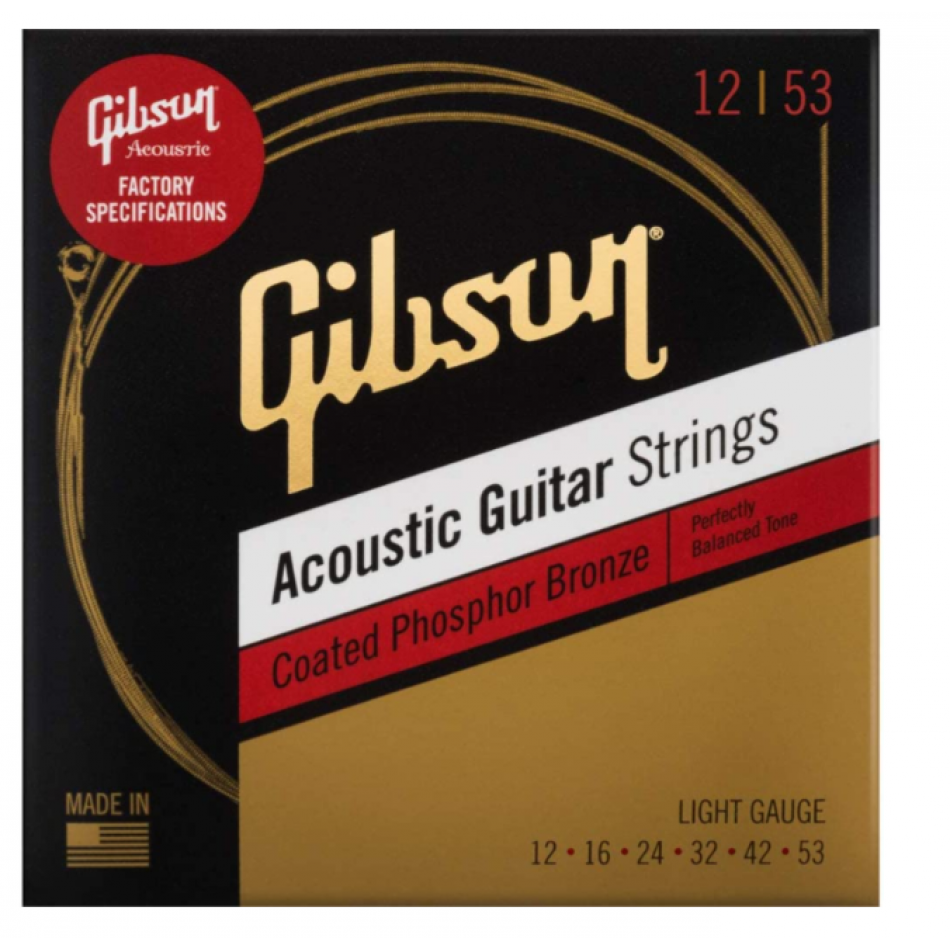 GIBSON SAG-CPB12 COATED PHOSPHOR BRONZE ACOUSTIC GUITAR STRINGS 12-53 LIGHT