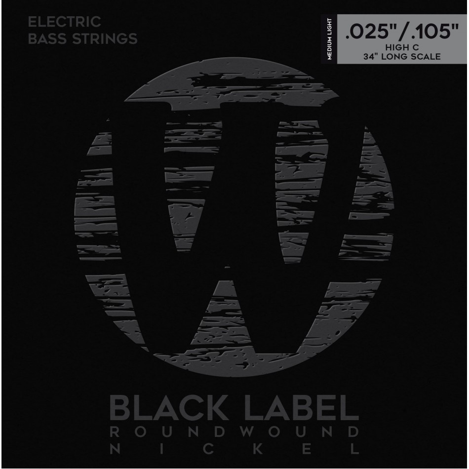 WARWICK 41311 Black Label, Nickel-Plated, Medium Light 5-String High C (25-105)