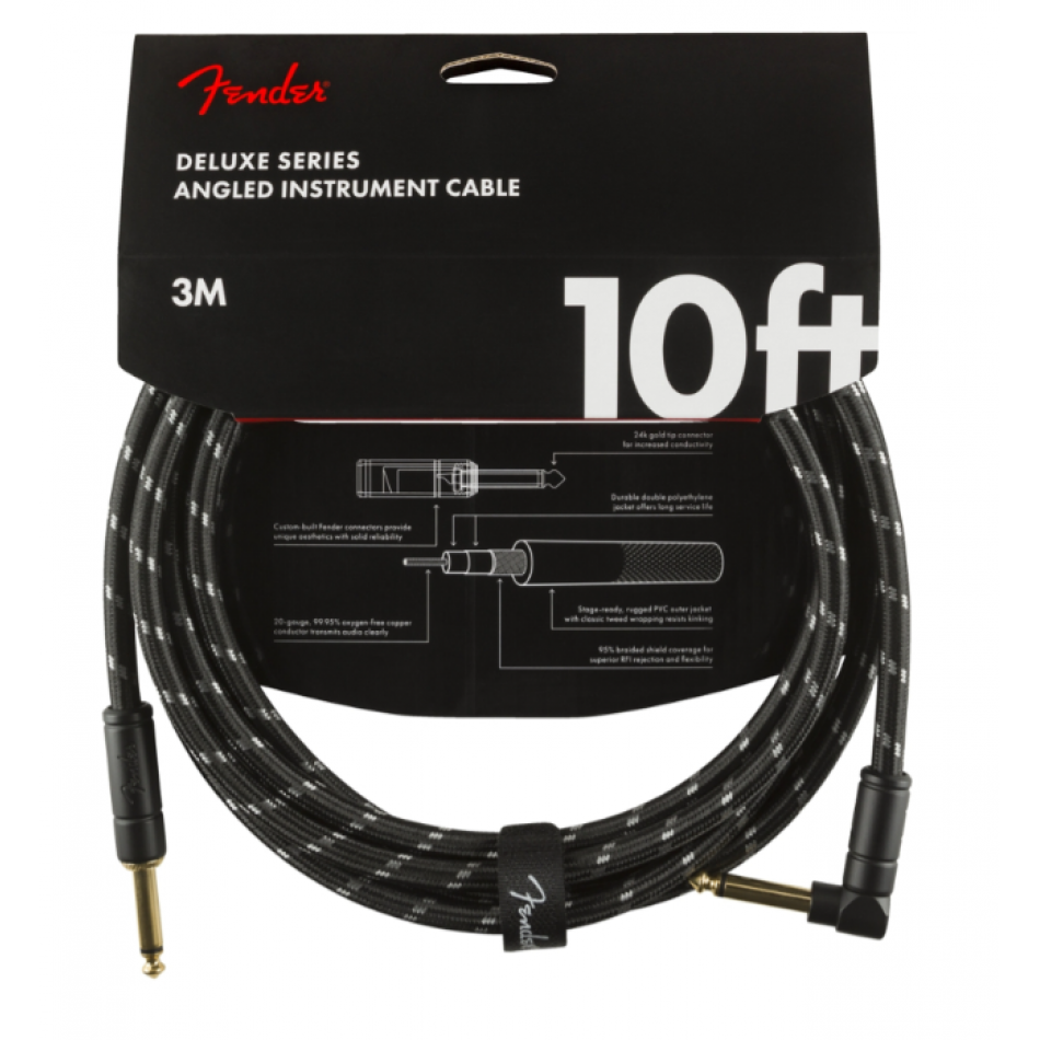 FENDER CABLE DELUXE SERIES 10' ANGLED BLACK TWEED