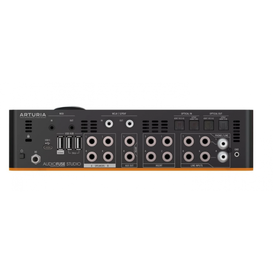 Кількість і якість інтерфейсів у AudioFuse Studio вражає! Комбіновані входи доступні в режимах Inst/Line/Mic, плюс доступні функції інвертування фази та подачі фантомного живлення. Крім того, AudioFuse Studio обладнаний 2 роз'ємами Phono/Line, 4 Insert-входами, L/R роз'ємами AUX OUT. Для виводу, посилу та обробки сигналу передбачені 4 виходи TRS, 8 цифрових ADAT входів/виходів, один S/PDIF вхід/вихід, MIDI IN/OUT та 3 USB-порти. AudioFuse Studio збирає все в одному місці завдяки вишуканому робочому простору, виконаному за принципом «одна кнопка — одна функція», так що Ви можете сконцентруватися на найголовнішому — Вашій музиці.