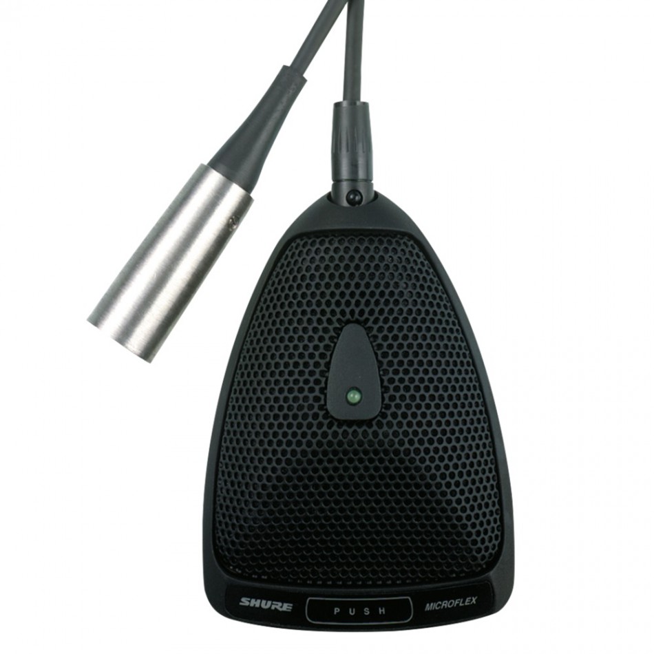 Плоский настільний суперкардіойдний мікрофон граничного шару. Програмована кнопка управління. Зелений LED індикатор активності. Логічні входи і виходи. Сумний кабель з роз'ємом 3-Pin XLR 4м. Висновок кабелю з задньої частини мікрофона. Колір чорний
